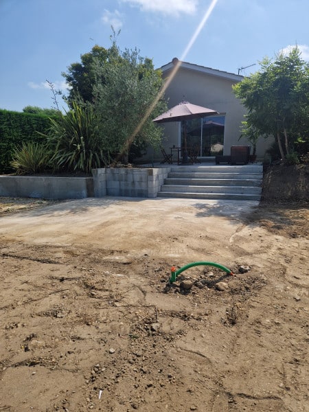 Nous procédons à l’apport de terre végétale et au nivelage de votre parcelle. Cette étape est essentielle pour corriger les irrégularités du sol, favoriser le drainage naturel et préparer la pose d’une pelouse ou d’un massif.